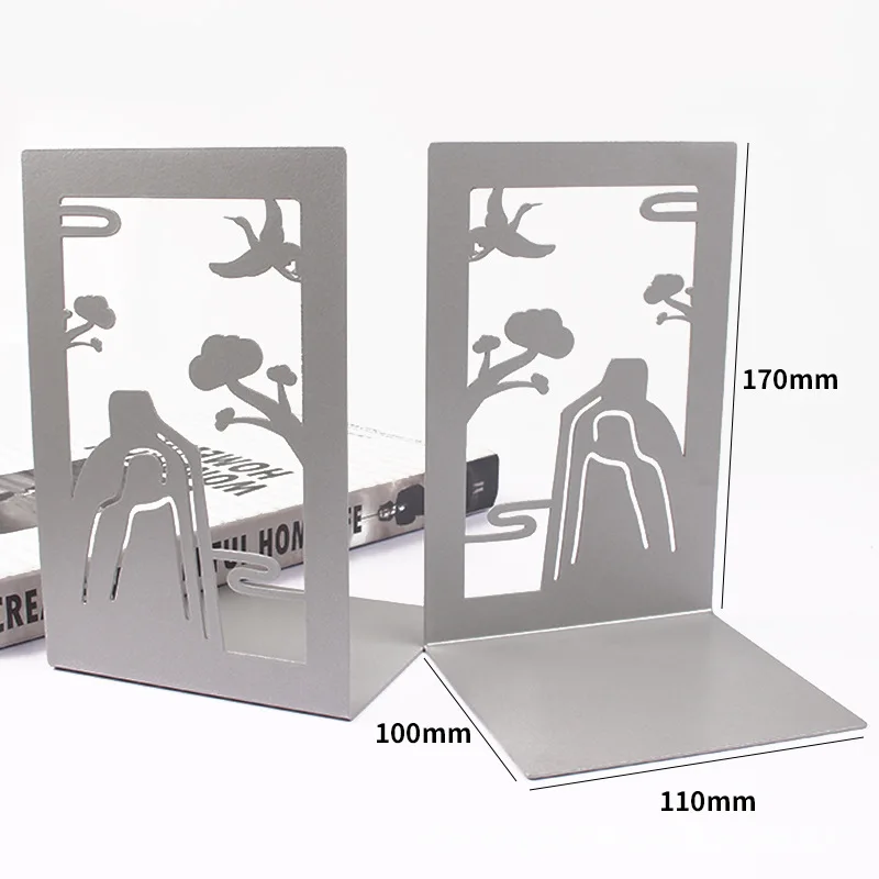 2 Pcs/Set Chinese Elegant Style Bookend Metal Book Stand Holder Desktop Organizer Storage Rack Office School Supplies