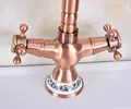 Basin Faucets Antique Red Copper Bathroom Sink Mixer Two Handles Single Hole WC Bathroom Faucet Brass Hot and Cold Tap anf613