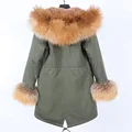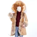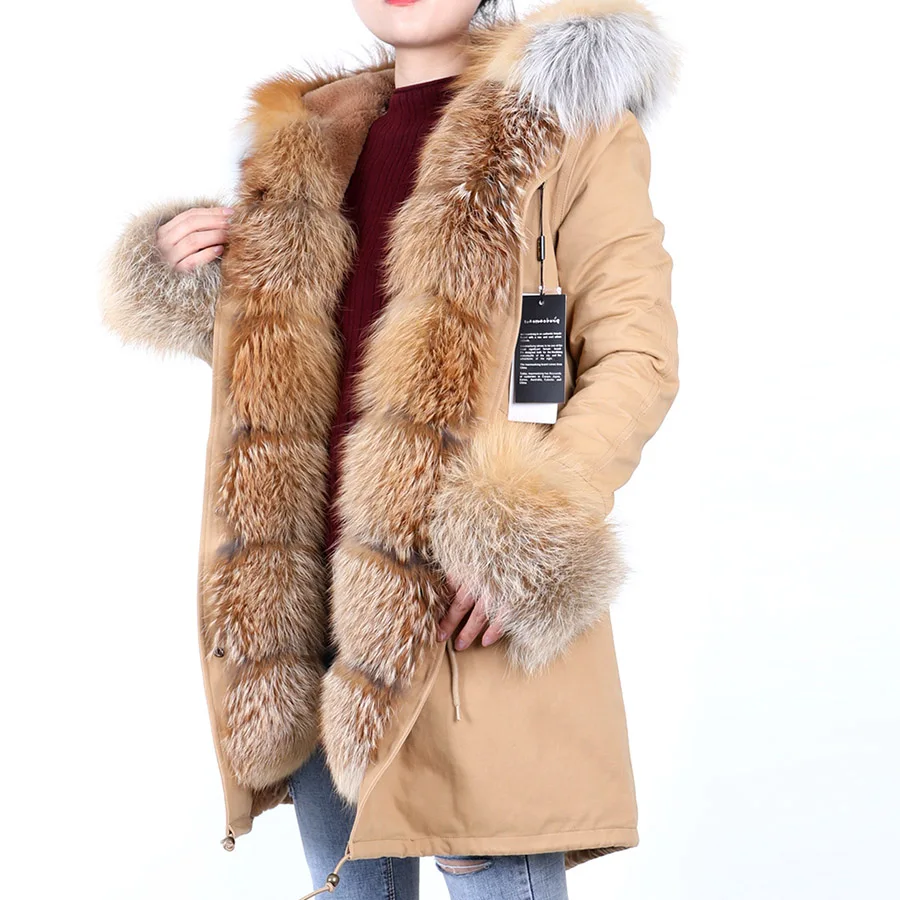 New 2021 Women's leather female jacket Large Natural Fox Fur Hooded Coat Parkas Outwear Long Detachable Lining winter jackets