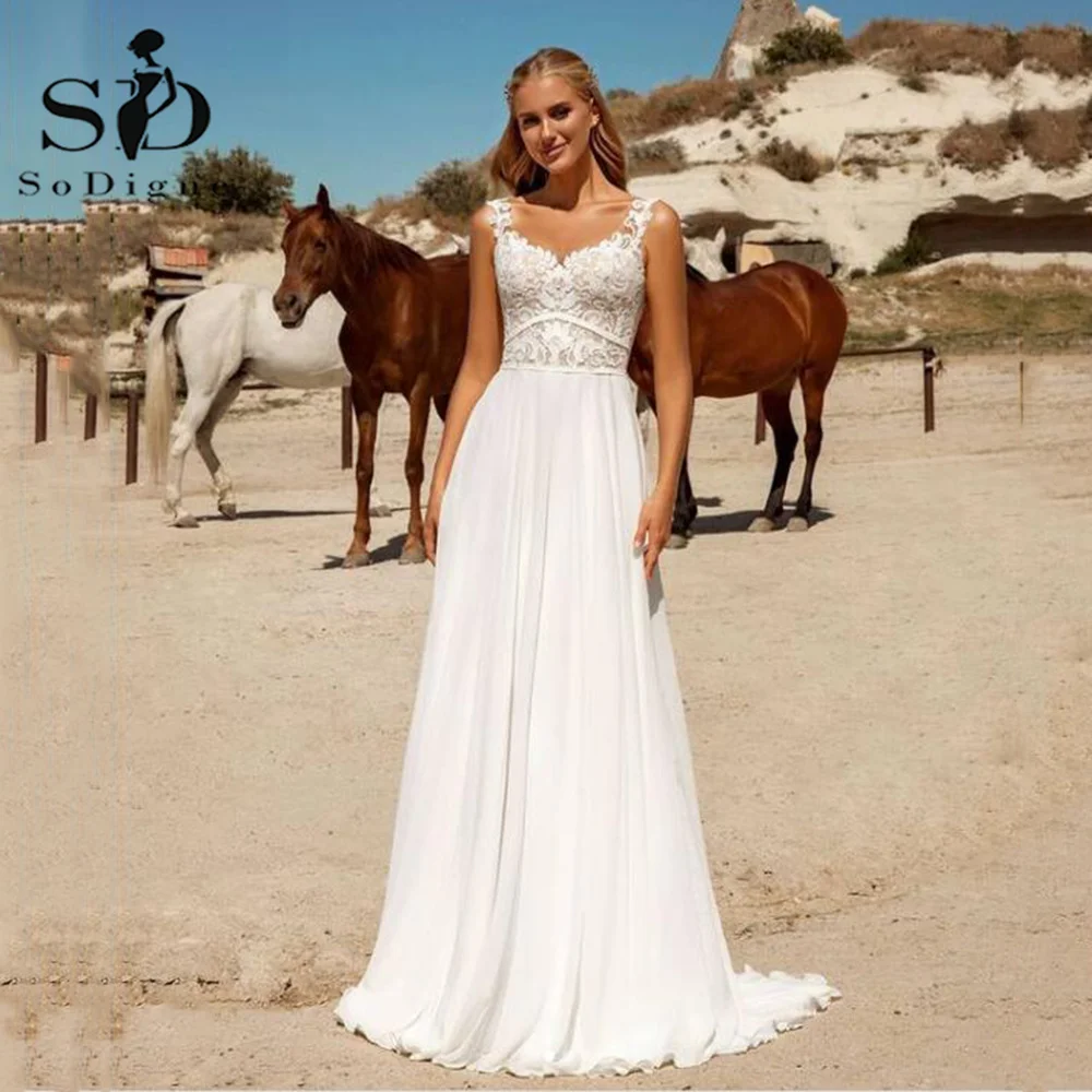 SoDigne Boho Beach Wedding Dress 2021 Lace Appliques Sexy Backless Bridal Dress Plus Szie Wedding Gowns vestido de noiva
