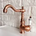 Swivel Spout Water Tap Antique Red Copper Single Handle Single Hole Kitchen Sink & Bathroom Faucet Basin Mixer Tap anf403